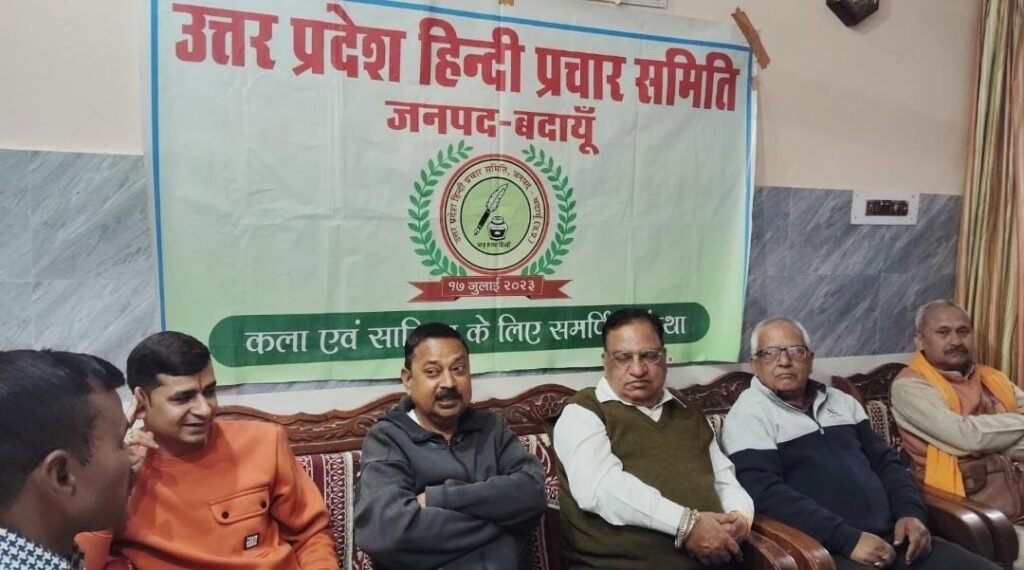 बदायूं – उत्तर प्रदेश हिन्दी प्रचार समिति बदायूं की आवश्यक बैठक जोगीपुरा में सम्पन्न हुई जिसकी अध्यक्षता काशीनाथ वर्मा ने की ।